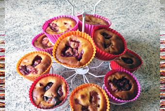 7. Versez ensuite la pâte dans les moules, par-dessus les morceaux de fruits.