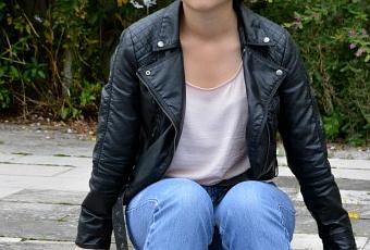 Je porte un jean Levi’s vintage, un perfecto en cuir H&M, une bague H&M, des chaussures New Look et un top Cache-Cache