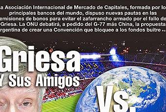 Et comme dit le gros titre du journal, c'est une question qui intéresse désormais l'ensemble du monde, puisque tous les Etats empruntent sur le marché privé et sont menacés par la jurisprudence Griesa qui leur avait fait perdre une partie de leur liberté de décision en termes de gestion de la dette et donc une part de souveraineté monétaire et budgétaire. Ce jugement les mettait dans les mains d'une poignée de spéculateurs sans foi ni loi ou plus exactement qui n'ont pour toute boussole que le profit le plus à court terme possible et mettait aussi les créditeurs de bonne foi à la merci de quelques voyous en col blanc, disposés à tout pour empocher du fric au détriment du reste de la planète.