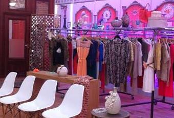La pièce est assez vide, avec des étagères au fond et des accessoires de mode disposés dessus: sas, chaussures, lunettes de soleil et là je me dis en moi-même :"Tiens, vous avez pensé aux goodies? Car si il y en a, moi je prendrai bien cette paire de chaussures vertes à paillettes!". Mais non, pas de cadeau souvenir.
