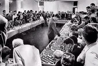 Exploit en 1964. A 21 ans, le prodige américain des échecs Bobby Fischer affrontait en simultanée 50 adversaires à la fois. Il remportait 47 parties, en perdait une seule et annulait sur 2 échiquiers.