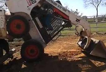 Sur un chantier de construction, un homme montre à ses collègues toute son expérience au volant d’un chargeur, un mini-tractopelle extrêmement maniable. En quelques secondes, il arrive à charger l’engin à l’arrière d’un utilitaire. Classe !