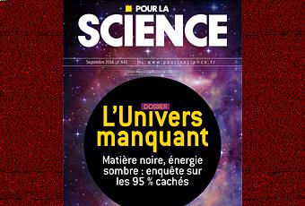1°/L’exemplaire de septembre 2014 de POUR LA SCIENCE est dans son titre et dans les 3 articles qui sont chargés de le justifier consacré a « L'univers manquant .Matière noire, énergie sombre : enquête sur les 95 % cachés »…et voici le résumé qu’ en donne le magazine : « La matière ordinaire - les étoiles, les planètes et tout ce qui nous entoure - ne représenterait ainsi que cinq pour cent de l'Univers. Le reste se partagerait entre l'hypothétique matière noire et la non moins inconnue énergie sombre. Depuis 20 ans, nous avons des indices de la présence de ces composantes invisibles du cosmos mais les natures de la matière noire et de l'énergie sombre restent à identifier. Notre dossier fait le point sur ces recherches visant à élucider le plus grand mystère de la cosmologie moderne. »