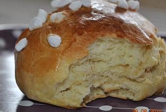 - mélangez le jaune d'oeuf avec un peu de lait et badigeonnez les pains, saupoudrez de sucre grains et enfournez a 200°+-20min(les pains doivent etre dorés)