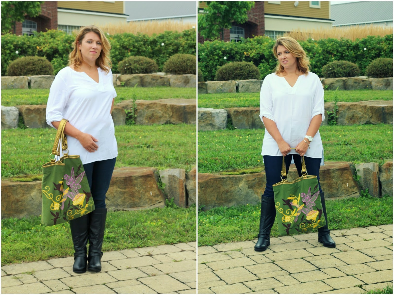 Cette tunique blanche lui va à merveille; c'est son encolure qui est particulièrement intéressante! Comme elle est complètement passionnée par la côte est américaine (elle y vivrait volontiers, je crois!), le rappel un brin nautique de cette tunique tombe naturellement dans ses goûts!