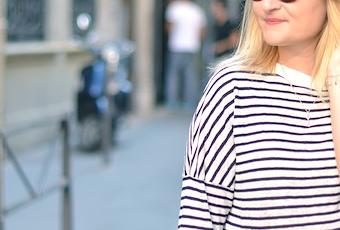 Marinière Front Row Shop (similaire ici) / Jean Boyfriend H&M / Sneakers Rosherun Nike x Liberty / Pochette American Apparel / Lunettes Wayfarer RaybanBon je crois que niveau marinière je suis cernée, mon dressing en est rempli et ceux depuis déjà quelques temps déjà, une passion rayure depuis presque toujours (merci Mum^^). Et une nouvelle vient s'ajouter à ma collection et je l'adore tellement que j'ai vraiment du mal à la quitter. Et chose importante à noter, elle est en lin et il faut la laver à la main, d'habitude je laisse pendant au moins 6 mois au linge sale les vêtements à laver à la main, et là miracle à peine au sale directe lavée... Vous voyez à quelle point je l'aime! Elle est ultra agréable, j'adore sa coupe loose asymétrique qui dénude une épaule, en bref elle a tout bon!