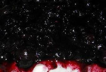 Montage : 1. Verser la garniture sur la base biscuitée. Poser dessus une fine couche de sauce au myrtilles. Placer au réfrigérateur toute une nuit.