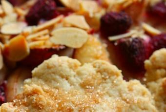 J’ai beaucoup vu cet été des tartes rustiques et j’ai succombé devant celle d’Emmanuelle, j’ai ajouté uniquement des framboises et des amandes effilées sinon j’ai suivi strictement sa recette et je n’ai pas été déçue !!! Merci Emmanuelle !