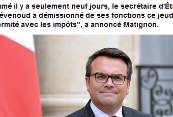 Pour clore ce chapitre qui n’a guère d’intérêt en soi, sinon par la personnalité du démissionnaire qui se trouve avoir de surcroît – ô ironie du sort – participé à la commission d’enquête sur l’affaire Cahuzac, je dirais que si Hollande et le premier ministre veulent un gouvernement irréprochable, sur la voie de la transparence et de l’intégrité, ils feraient bien de s’intéresser à des cas bien plus graves d’autres personnalités au gouvernement qui ont bien davantage à se reprocher…. Je dis ça…