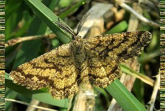 La Phalène picotée, Ematurga atomaria (Linnaeus, 1758) n'est pas un Rhopalocère (papillon "de jour") mais un Hétérocère (papillon "de nuit"). Toutefois, cette petite espèce d'environ trois centimètres d'envergure est active en journée. La coloration des mâles comme celle des femelles est assez variable, mais les mâles, qui se reconnaissent facilement à leurs antennes pectinées, présentent en général des couleurs orangées à brunes alors que les femelles sont plus ternes, souvent grises. Certains individus ne présentent aucune moucheture foncée ; ils sont d'un brun uniforme (Cliquez sur la photo pour agrandir).