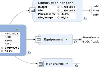 Cette fonction vous permet d’introduire dans votre map des données brutes ou calculées telles que données budgétaires, comparaisons Réel/Prévisions, simulations, etc. Bref, vous pouvez ainsi visualiser et présenter facilement des données chiffrées.