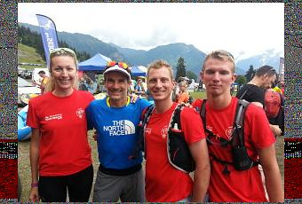 J’arrive à 7h00 à Plaine-Joux. Plein de places de parking libres nickel. Nous sommes 3 fermeurs sur ce parcours : Rémi, un gamin nageur de compète de Sallanches (oui gamin car il a moins de la moitié de mon âge) et Edy un thononais (même âge que moi et une folle puissance de course sous la semelle). Seb BO me rejoint en haut en vélo. Je vais me présenter à Benoit (l’organisateur de l’Office de Tourisme de Passy). Explications du matos (radios, trousses de secours, cartes, plans des canaux radio et le drapeau avec la rubalise qui indique que nous sommes les fermeurs). Les coureurs ont droit à un échauffement en musique. Huit heures, c’est l’heure ! Go !