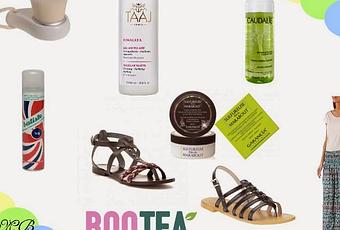 - Caudalie - Mousse Nettoyante Fleur de Vigne 150 ml : 11.99€- Tosowoong - Brosse nettoyante : 24.99€- Sulfureuse Pâte du Marabout 50g : 17.20€- Batiste - Brit : 5.50€- Taaj - Eau Micellaire de l'Himalaya 500ml : 8.90€ - Bootea 28 day teatox : £34.99- Texto - Nu pied : 49.99€- Les Tropeziennes : 45.00€- Camaïeu - Jupe longue : 34.95€