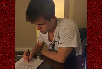 C'est avec une pointe d'ironie que le champion d'échecs norvégien a posté cette photo avec un stylo et ledit contrat et le commentaire " Ce fut un plaisir de signer des autographes pour les fans à St Louis. Après le tournoi, j'ai trouvé le temps pour une signature de plus". La compétition aura lien à Sotchi du 7 au 28 Novembre 2014.