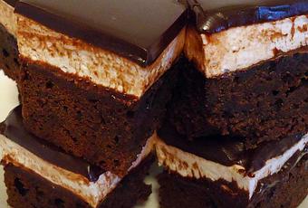 Voici un dessert extra gourmand pour les mordus du chocolat. Un biscuit brownies riche et très chocolaté est surmonté d'une couche de guimauve à la vanille, et d'une ganache extra lisse au chocolat noir.