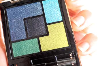 Cette merveilleuse palette, joliment nommée "Lumières Majorelle", se compose donc de 5 fards bien pigmentés (je pensais avoir besoin d’une base blanche pour les faire ressortir au mieux mais, finalement, ils se suffisent à eux-mêmes !), légèrement poudreux mais agréables à travailler :