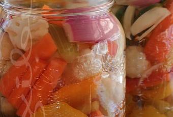 3)Remplir des pots Bernardin avec les légumes (ajoutez si désiré l'ail et les échalotes française). Laisser mariner au réfrigérateur au moins 1 journée avant d'y goûter... si vous êtes capables de vous contenir! Il n'y a pas d'étapes de stérilisation dans la recette originale et je n'ai pas jugé bon de le faire mais à vous de décider.