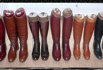 Première photographie : Quelques paires de bottes de sa collection : Chesnot, Bunting, Maxwell, Hellstern …