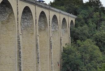 Une jolie balade d'une heure part du bas du viaduc, parcourt celui-ci pour nous emmener de l'autre côté, à l'abri de magnifiques arbres. Ensuite, nous sommes sur l'autre rive de la rivière et marchons agréablement dans des rues aux maisons magnifiques, fleuries. D'ailleurs, tout le village est parfaitement fleuri. Cela change d'autres contrées plus austères et moins mises en valeur par leur maire et leurs habitants...