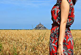 Et ce matin là, rien n'étais préparé, ni cette tenue estivale, une nouvelle petite robe shoppée en solde chez Mango que j'avais destiné à être une tenue de plage. Bien trop impatiente comme toujours, je n'ai pas pu attendre mes prochaines vacances pour la porter. Ni le lieu du shooting, ce champ de blé aux jolies couleurs dorées, arrêt impromptu au bord de la route, qui nous offrait une vue magnifique sur la baie du Mont Saint Michel.Et pourtant je crois que pour une première je n'aurais pu mieux faire même en y travaillant des heures.