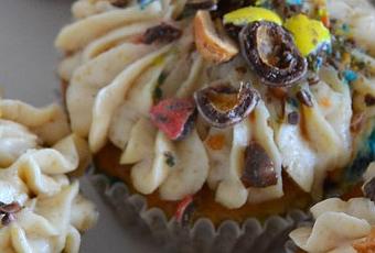 - Une fois dressé sur vos cupcake parsemer de m&m’s