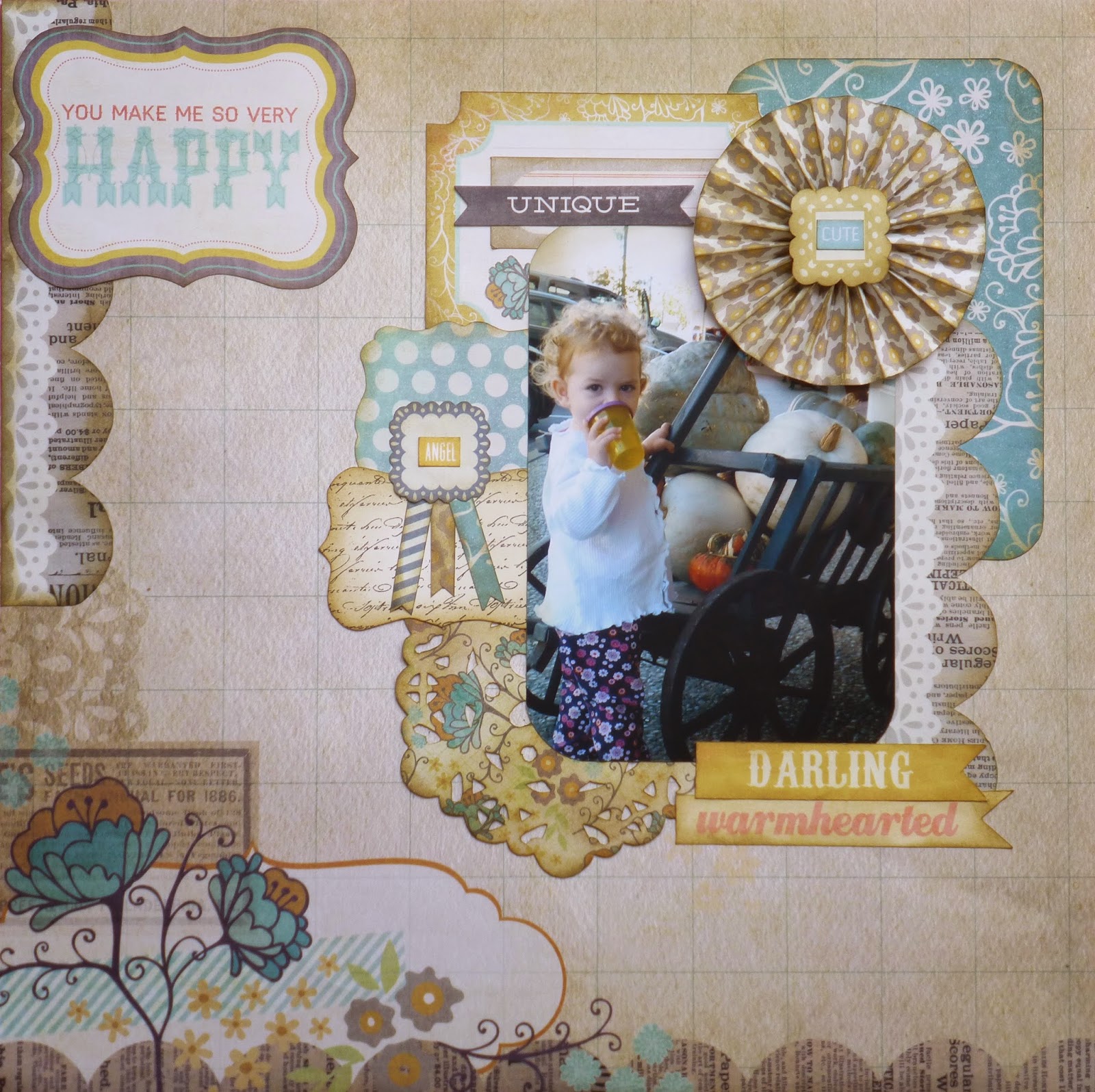 Materiel: papiers MME et Recollections, stickers MME, distress ink de Tim Hotlz, tampons ecritures de the Paper Studio, chipboard napperon de Maya Road.
