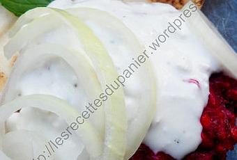 Napper les galettes avec cette préparation, servir sur un pain libanais avec des rondelles d’oignon et des feuilles de menthe.