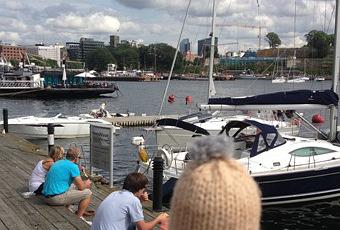 Globe-T. @ Oslo (Norvège). Visite de la ville à vélo : voilier dans la marina d’Aker Brygge.
