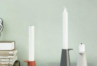 Les chandeliers sont en aluminium poli et enduit de poudre dans un choix de quatre couleurs : anthracite, sable, vert clair et rouge brique.