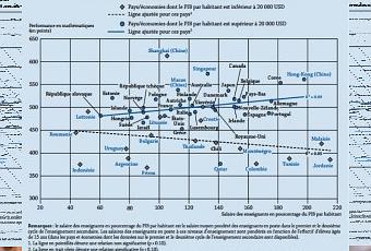 Tableau à l’appui, l’OCDE montre qu’il y a bien une corrélation entre les performances des élèves et le niveau de salaire des enseignants : « parmi les pays et économies où le PIB par habitant est supérieur à 20.000 dollars, les systèmes d’éducation qui rémunèrent davantage leurs enseignants obtiennent de meilleurs résultats ».