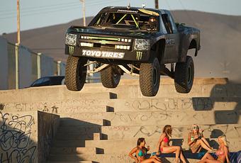 Au volant de son Trophy Truck survitaminé (850 chevaux), le pilote Ballistic BJ Baldwin s’est aventuré près et dans la ville d’Ensenada (Mexique). Une vidéo qui sent bon la testostérone !