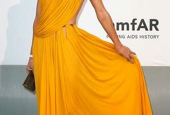 Liya Kebede, égérie L'Oréal Paris, en robe Roberto Cavalli, sandales Jimmy Choo et bijoux De Grisogono