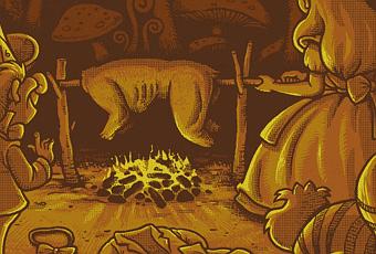 Sur le très bon site de vente de t-shirts et accessoires Threadless, on trouve un tas d’excellents artistes aux styles différents et souvent drôles. Ben Chen caractérise sont style par quelque chose de « sombre mais plein d’humour et d’imagination ». Dans son monde, Alice au pays des merveilles fait rôtir le Lapin Blanc, Peter Pan va embrocher Capitaine Crochet ou un Thomas le Petit Train vient percuter Cars.