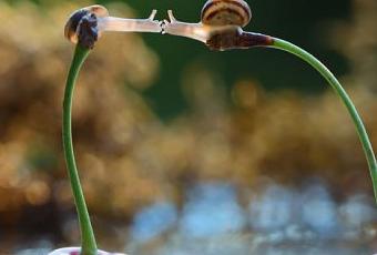 Cette photographie fait partie d’une série sur la vie quotidienne des escargots. Le photographe a utilisé la macro photographie. Il a photographié les escargots dans leurs habitats naturels