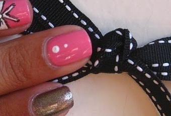 J'ai posé un joli vernis rose barbie sur le pouce, majeur et annulaire, et un vernis gris foncé/argenté sur l'index et l'auriculaire.