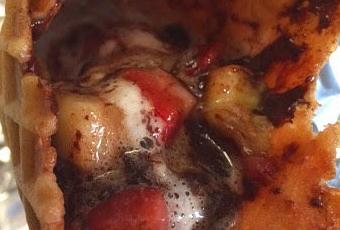 Cornets aux fruits et guimauves sur le BBQ de SakyaPréparer des fraises et des bananes en cube avec des minis guimauves et des chippits de chocolat noir ou au lait selon votre goût. Vous pouvez ajouter du beurre d'arachide dans le mélange c'est vraiment délicieux.Pour les fruits allez-y selon vos goûts aussi, comme framboises, bleuets, pêches, poires etc..