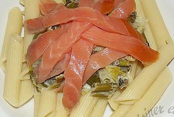 J’avais des pâtes, du saumon fumé, des poireaux hop j’ai fait sa recette !!