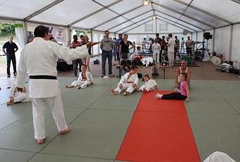 Il y avait un peu plus d'affluence sous le chapiteau des sports de combat où nous avons pu accueillir quelques personnes et les faire participer à une séance d'initiation.