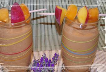Dans votre blender mettre deux pêches jaunes épluchées et dénoyautées, 4 abricots dénoyautés, 20cl de lait de coco et mixez l'ensemble.