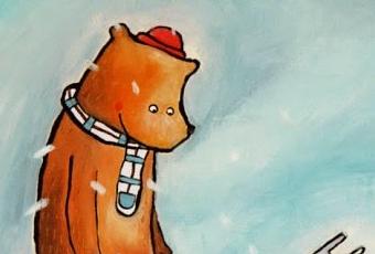 Les tons, les teintes me font fondre le coeur, l'ambiance hivernale mais ô combien douillette et rassurante autour d'un bon chocolat chaud rendent cet album magique et généreux, avec un coeur gros comme ça! C'est l'histoire toute simple et mignonne d'un gros ours qui se dépêche de rentrer chez lui car des flocons de neige tombent et il fait très froid. Soudain, il entend un drôle de bruit, derrière un rocher. Qu'est-ce que c'est ? Pour le savoir, il faudra soulever le premier rabat du livre pour découvrir un petit lapin transi de froid, qui grelotte et implore gros ours de l'emmener avec lui. Gros ours a le coeur sur la main, il n'hésite pas et place le petit lapin bien emmitouflé au chaud sous son chapeau. Ils reprennent la route mais bientôt ils entendent d'autres bruits...