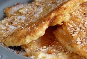 avant de les faire frire, dans une poêle contenant de l’huile chaude. Retournez-les dès qu’elles sont dorées.