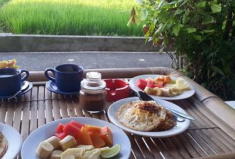 Après notre séjour au centre de Bali, il nous fallait quitter notre chouette hôtel d’Ubud, le Puji Bungalow, et les petits déjeuners servis sur la terrasse pour continuer notre route.