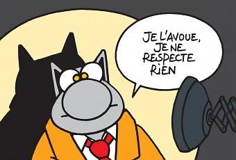 Depuis qu'il est redescendu parmi nous (par minou ?) après avoir endossé le rôle de Dieu, Le Chat revient à sa préoccupation première : nous mettre les zygomatiques en feu. Le Chat balance et flingue à tout va : il passe à table, crache le morceau, met les bouchées doubles et n'y va pas avec le dos de la cuillère.