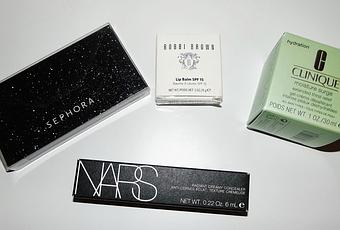Palette, Sephora9,99€Radiant Creamy Concealer, Nars 26€Moisture Surge, Clinique 28,50€Baume à lèvres SPF 15, Bobbi Brown 21€