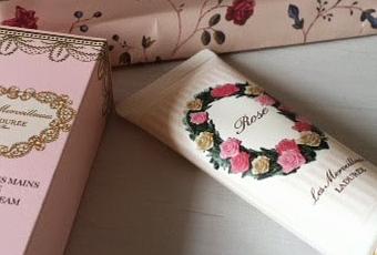 Comme je vous le disais ici, j'avais été un peu "surprise" en découvrant la gamme maquillage de Ladurée, qui semblait somme toute très sympatoche, mais dont les prix pratiqués étaient assez ... aberrants ; lorsque j'ai appris que Ladurée allait étendre sa gamme beauté, en y ajoutant des produits soin, je vous avoue avoir été très curieuse... Pour commencer, première bonne nouvelle, les prix pratiqués sont un chouilla plus raisonnables que pour ceux du maquillage, cela reste quand même un peu élevé, mais bon, je dois dire qu'il y a du mieux. Par exemple le lait pour le corps est à 37 euros, ce qui est raisonnable, la crème pour les mains à 27 euros et le savon pour le corps à 31 (oui ok, là ça pique un peu). J'ai également été contente de constater que contrairement au maquillage, Ladurée sort une gamme soin assez limitée, qui comprends trois basics, et non une dizaine de produits avec certains un peu farfelus. Là on sent que la marque s'est concentrée sur l'essentiel, et ça fait du bien. Pour ce qui est des produits en eux mêmes, j'ai eu l'occasion de tester la crème pour les mains à la rose.