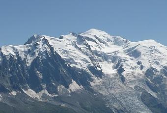 (de gauche à droite, le Mont Blanc du Tacul, le Mont Maudit et le Mont Blanc)