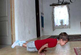Claudio Stroe est un enfant de 5 ans qui arrive à faire plusieurs pompes à 90 degrés tout en gardant le sourire, il monte et descend avec facilité. Son père l’a filmé lors d’une démonstration. A noter également que dans la famille Stroe, l’aîné s’appelle Giuliano, il est connu pour être l’un des enfants les plus musclés du monde, son petit frère compte bien le rattraper.