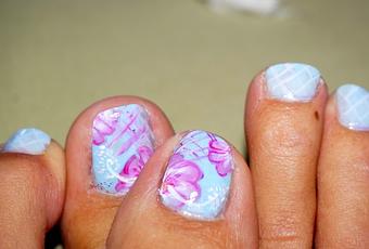mes tests nail art te manquaient hein ? Je te montre un essai na avec essai one stoke sur mes pieds..... et un quadrillage.