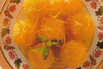 Rangez les oranges dans un plat, arrosez-les avec le sirop parfumé, puis décorez avec les zestes et les feuilles d’oranger ou de menthe