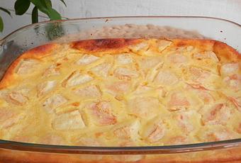 Eplucher et couper les poires en gros morceaux. Les placer dans le plat, puis verser la préparation à flan par-dessus.